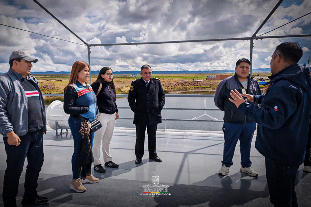 La Paz.- Los integrantes de la Comisión de Gobierno, Defensa y Fuerzas Armadas, presidida por la diputada Catherine Pinto (PDC), realizaron una inspección a la Base Naval de Guaqui, que se encuentra a orillas del lago Titicaca, para recibir información sobre los proyectos de infraestructura que se ejecutan en el lugar y evaluar las necesidades institucionales de la Armada Boliviana.